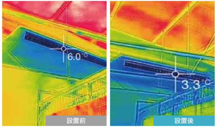 設置後、サーモグラフィの青や黄色部分が増えており、冷えが進んでいることが判ります。(約ー 2.7℃下降)