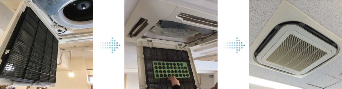 エアコンの吸い込み口のフィルター部分を開け、フィルターの上に置いて閉めるだけで設置は完了です。